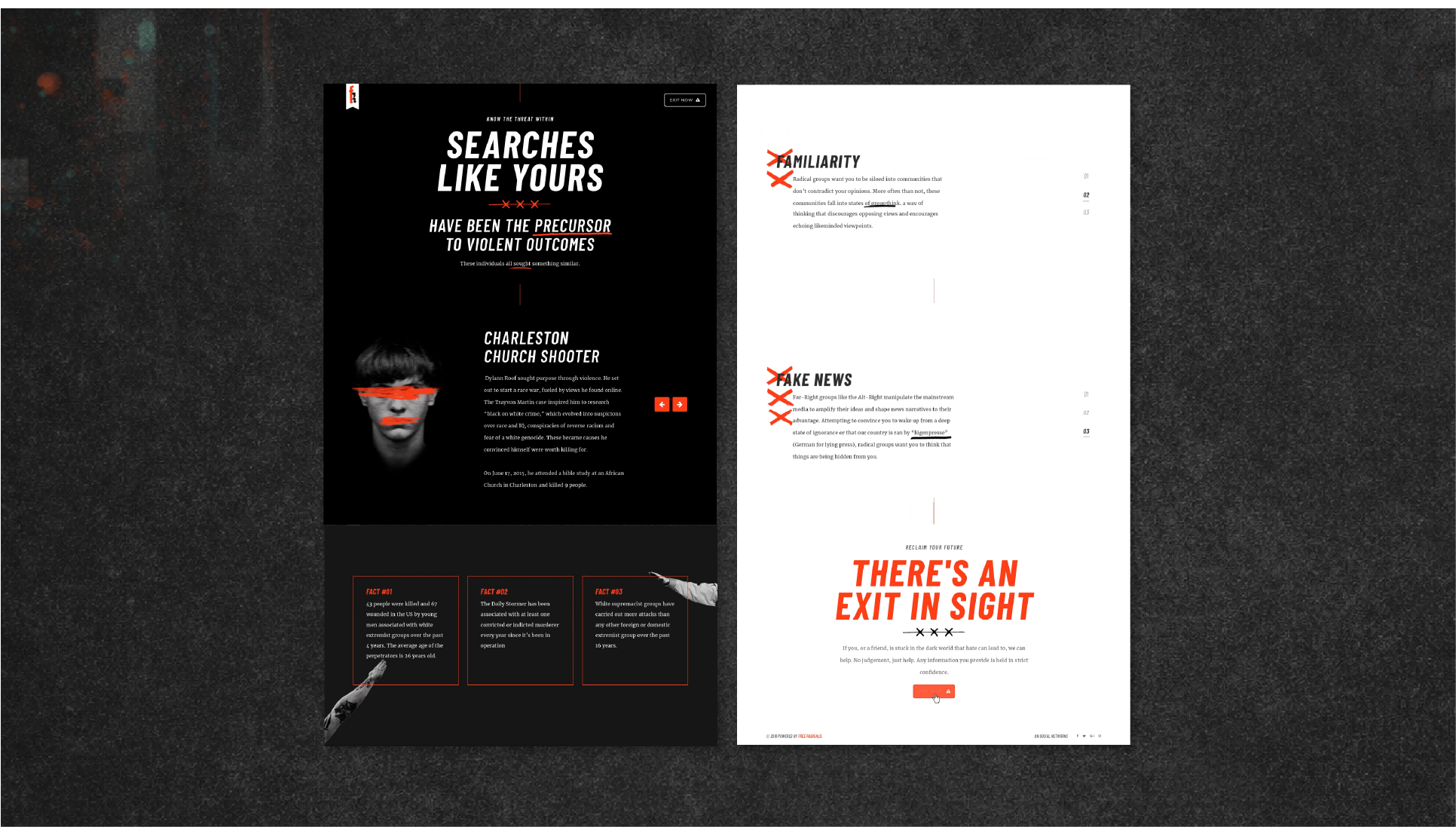 Designed the Free Radicals website, shaping layout, hierarchy, and interaction to support gradual perspective shifts rather than confrontation.