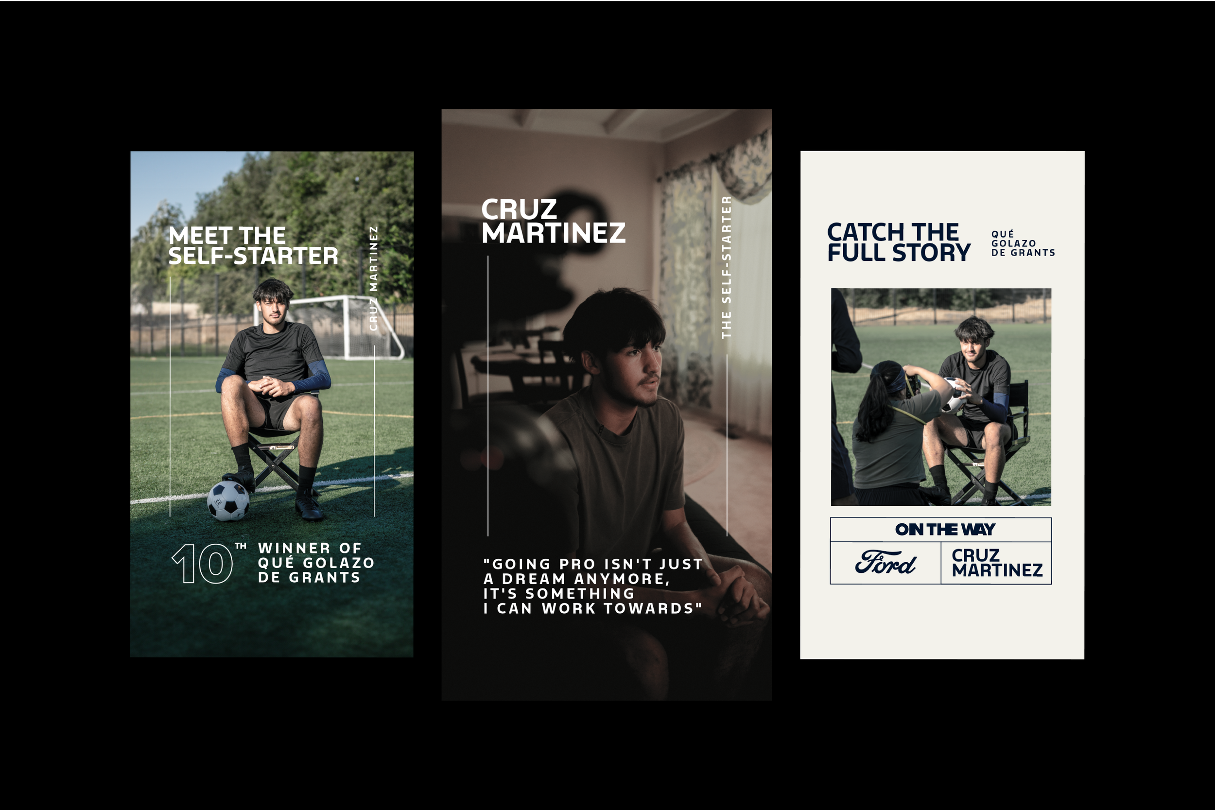 The story followed Cruz Martinez and was brought to life through a hero film, one minute and short form digital cuts, photography, visual and logo direction, and static social assets. The campaign announcement was shared by professional soccer player María Sánchez.