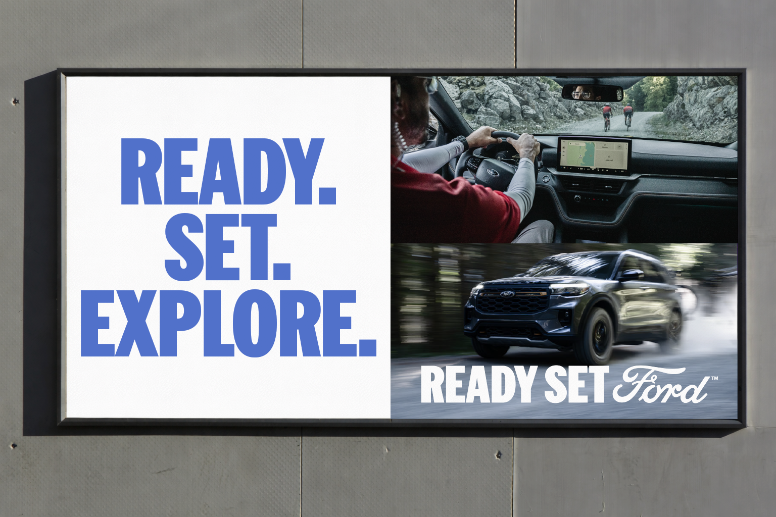 Ready Set Ford is Ford’s new branding and headline system, designed to unify how the brand shows up across vehicles and platforms. Built around a bold, modular typographic structure, the Ready. Set. format allows capability led headlines to scale seamlessly across TV, OOH, digital, social, and photography.
