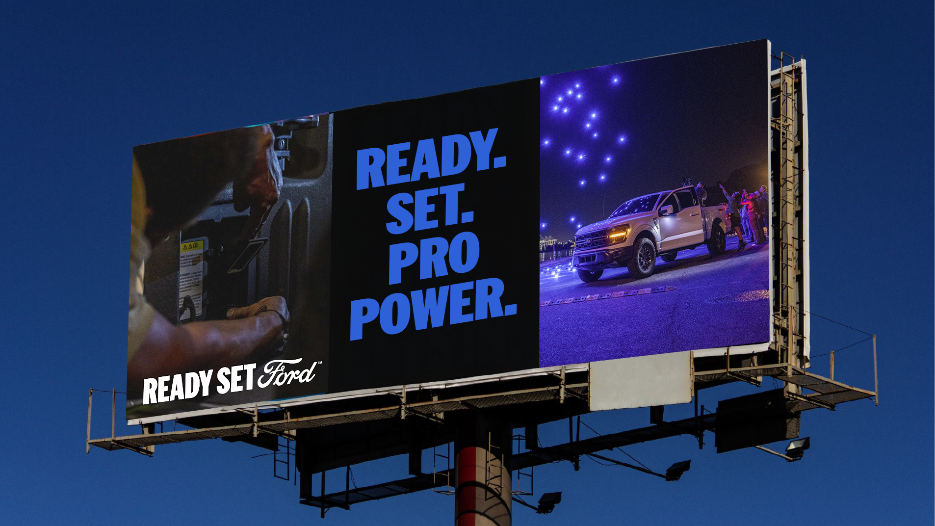 Defined the visual and typographic language for the Ready Set Ford launch, establishing a scalable headline system and ensuring consistency across TV, OOH, social, and photography.