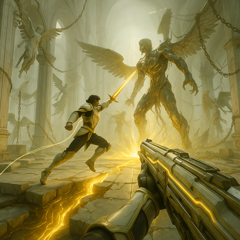 Guided by Elior’s lingering spirit, Vesper sets out for a distant, crumbling church said to house a portal to Heaven. There, he will wage war against angels, unravel sacred lies, and confront God to reopen the Gates of Heaven and reclaim the souls He has forsaken.